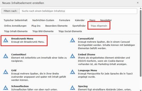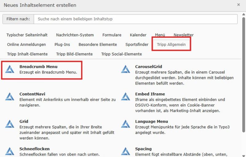 Das Breadcrumb-Content-Element bietet eine flexible Möglichkeit, die Navigationsstruktur einer Website darzustellen. Es zeigt den aktuellen Standort des Benutzers innerhalb der Website-Hierarchie und erleichtert die Navigation zurück zu vorherigen Seiten.